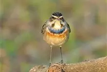 蓝点颏亦称“蓝喉歌鸲”,通称蓝靛颏儿。身体大小和麻雀相似,体长12-13厘米,体重17-18克。头部、上体主要为土褐色。眉纹白色。尾羽黑褐色,基部栗红色。颏部、喉部辉蓝色,下面有黑色横纹。下体白色。…全部>>