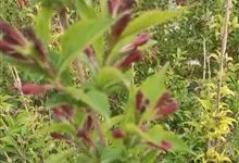 红王子锦带花是忍冬科锦带花属的落叶开张性灌木。株高1 -2米;嫩枝淡红色,老枝灰褐色;单叶对生,呈椭圆形,先端渐尖,叶缘有锯齿,红枝及叶脉具柔毛;花冠漏斗状钟形,花冠筒中部以下变细,聚伞花序,…全部>>