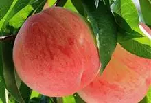 水蜜桃:蔷薇科、桃属植物。南方品种群中肉质柔软多汁呈软溶质的一类品种。果实顶部平圆,熟后易剥皮,多粘核。
