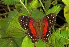 优红蛱蝶:翼展4.5-12厘米。是一种美丽的蝴蝶。色彩鲜艳,花纹相当复杂。前足相当退化,短小无爪。前翅R脉5条,常共柄。卵呈半圆球形。幼虫头上常有突起,体节上有枝刺,腹足趾钩1至3序中列式。蛹为垂蛹。全部>>