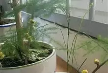蓬莱松是天门冬科、天门冬属多年生丛生草本植物。宿存,圆柱形肉质根,纵截面为绿色和表面灰色。植株高可达3米。茎呈圆柱形或近四边形,底部木质化,具有灰色或灰褐色。幼嫩的茎在每个节上都被紫绿色鳞片包,…全部>>