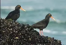 蛎鹬是鸻形目蛎鹬科蛎鹬属。蛎鹬的成鸟夏羽头、颈、胸和上体大部分为乌亮的黑色,腰到尾上覆羽白色,尾羽基部白色,端部黑色;翼上黑色,具有白横斑;下体胸部以下白色,翼下白色带黑缘;虹膜红色,啄和眼圈橘色,…全部>>
