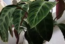 绒叶肖竹芋 Lindl.)是竹芋科,肖竹芋属多年生中等大草本植物,株高可达1米。叶片长圆状披针形,不等侧,叶面深绿,有黄绿色的条纹,天鹅绒般,叶背幼时浅灰绿色,老时淡紫红色,头状花序,花冠紫堇色或白色,…全部>>