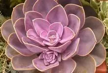 紫珍珠是景天科石莲花属的多年生肉质草本植物。植株中小型;叶片肉质,匙形,呈莲座状紧密排列;叶片粉紫色,叶缘呈粉白色,光照充足时颜色亮丽,不足时叶色会呈现深绿色或灰绿色,叶面光滑,被轻微白粉,…全部>>