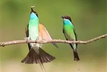 绿喉蜂虎是佛法僧目、蜂虎科的小型鸟类,共有9个亚种。身长22-25厘米,翼展29-30厘米,体重15-20克。喉绿色,额部、头顶至上背为锈红色,其余上体均为亮绿色。中央尾羽延长且端段狭细,…全部>>
