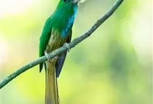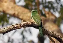 蓝须夜蜂虎是佛法僧目、蜂虎科的鸟类,体长约30厘米,是绿色林栖型蜂虎,蓝色的胸羽蓬松,嘴厚重而下弯。成鸟顶冠淡蓝,腹部棕黄带绿色纵纹。尾羽腹面黄褐。亚成鸟全身绿色。喉、胸部中央的羽甚长和亮色;该物种…全部>>