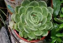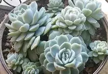 蓝石莲是景天科、拟石莲花属的多肉植物。茎部粗壮,成熟植株茎部木质化。叶片莲座型密集排列,株径不会很大,叶片相对较薄,常年绿色,表面布有白色粉末,中部凹陷,呈倒水滴状。叶尖较尖,叶缘光滑无褶皱,…全部>>
