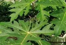 番木瓜,番木瓜科番木瓜属的常绿软木质小乔木,高达10米,具有乳汁;茎不分枝或有时于损伤处分枝;叶大且聚生于茎顶,近似盾形,叶柄中空;花单性或两性,有些品种雄株偶尔生两性花或雌花,…全部>>