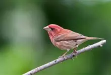 酒红朱雀小型鸟类,体长13~15厘米。雄鸟通体深红色,头部深朱红或棕红色,下背和腰玫瑰红色,眉纹粉红色而具丝绢光泽。两翅和尾黑褐或灰褐色、具暗红色狭缘,内侧两枚三级飞羽具淡粉红色先端。…全部>>