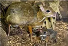 鼷鹿,别名小鼷鹿,共38个亚种。体形略比野兔大,体重1.3~2.0kg,体长420~630mm,肩高约200mm,是仅次于蹄兔目成员最小的有蹄类动物,也是鼷鹿科种体型最小的一种。面部尖长,无角,…全部>>