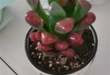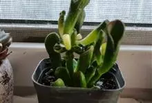 筒叶花月,是景天科青锁龙属的多年生草本植物。植株多分株,灌木状,茎较粗壮,圆柱形,表皮灰褐色;叶片肉质,互生,呈圆筒状,簇生于茎或分枝顶端,叶端呈斜截形,截面为椭圆形;花呈星状,淡白色;花期秋季。…全部>>