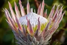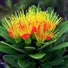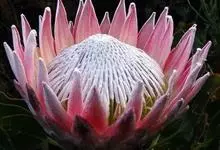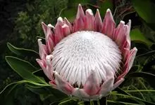 帝王花,山龙眼科帝王花属多年生常绿灌木植;茎干粗壮,叶色翠绿光亮;花朵呈圆球状;其苞片有的完全打开,使花朵呈扁平状;有的则呈半闭合状态,使花朵相对修长,…全部>>