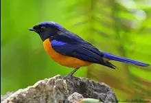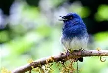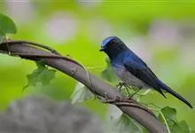 棕腹大仙鹟:体重24-28克,体长15-17厘米,是一种小型的色彩亮丽的鹟。雄鸟上体深蓝,下体棕色,脸黑,额、颈侧小块斑、翼角及腰部亮丽闪辉蓝色。与棕腹仙鹟易混淆,区别在色彩较暗。雌鸟灰褐,…全部>>