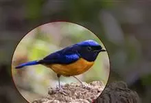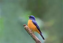 棕腹蓝仙鹟,Niltava vivida,鹟科仙鹟属的一种小型鸣禽,善在空中飞捕昆虫,中等体型18厘米,上体蓝,下体棕色,具黑色眼罩,胸橘黄渐变成臀部的皮黄色。国内分布于四川、云南、西藏和台湾等地。…全部>>