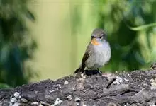 棕胸蓝姬鹟:属小型鸣禽,体长10-13厘米,体重6-10克,是一种体型很小的灰蓝及棕色鹟,雌雄羽色不同,雄鸟羽色艳丽,雌鸟羽色暗淡。雄鸟上体深蓝色,胸橙黄色,下腹灰白色。亚成鸟具褐色斑驳。…全部>>