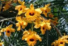 流苏石斛是兰科石斛属附生草本植物。流苏石斛的茎坚挺,圆柱形;叶革质,长圆形或长圆状披针形;花序疏生,有花梗;花金黄色,质薄,开展,稍有香气;花瓣椭圆形,边缘具微啮蚀状;花期为4-6月。流苏石斛者,花大,…全部>>