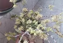 束花石斛是兰科石斛属植物。茎粗厚,肉质,下垂或弯垂,圆柱形,不分枝,具多节。叶二列,互生于整个茎上,纸质,长圆状披针形。伞状花序近无花序柄,每2-6花为一束,侧生于具叶的茎上部;花黄色,…全部>>