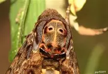 鬼脸天蛾,是鳞翅目天蛾科面形天蛾属动物。成虫翅展100~125毫米,体黑褐色;胸背有骷髅形斑纹;卵圆球形,直径约2毫米,淡黄绿色,表面光滑;老熟幼虫体长70~90毫米,蛹体长约56毫米;前翅为褐色,…全部>>