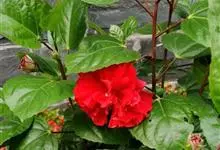 重瓣朱槿(酸醋花、月月开)锦葵目 > 锦葵科 > 木槿属 > 重瓣朱槿