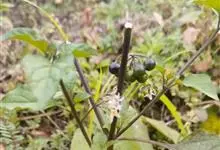 龙葵,茄科茄属一年生草本植物,茎近无毛或被微柔毛,叶互生,卵形或卵状椭圆形,叶常无毛;花小且下垂,花冠白色或淡紫色;浆果为球形,熟时黑紫色,有光泽;种子多数,卵形芝麻状,黄色;花期6-9月,…全部>>