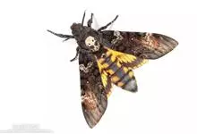 鬼脸天蛾,是鳞翅目天蛾科面形天蛾属动物。成虫翅展100~125毫米,体黑褐色;胸背有骷髅形斑纹;卵圆球形,直径约2毫米,淡黄绿色,表面光滑;老熟幼虫体长70~90毫米,蛹体长约56毫米;前翅为褐色,…全部>>