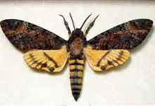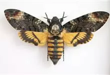 鬼脸天蛾,是鳞翅目天蛾科面形天蛾属动物。成虫翅展100~125毫米,体黑褐色;胸背有骷髅形斑纹;卵圆球形,直径约2毫米,淡黄绿色,表面光滑;老熟幼虫体长70~90毫米,蛹体长约56毫米;前翅为褐色,…全部>>