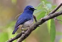 海南蓝仙鹟,Cyornis hainanus ,鹟科蓝仙鹟属的一种小型鸟类,体长13~15厘米。上体包括两翅和尾表面暗蓝色,前额和眼上眉斑较鲜亮。喉、胸暗蓝色,下胸和两胁蓝灰色,其余下体白色。…全部>>