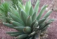 龙舌兰属是石蒜科下的一属。多年生植物。无茎或有极短的茎。叶呈莲座式排列,大而肥厚,肉质或稍带木质,边缘常有刺或偶而无刺,顶端常有硬尖刺。花茎粗壮高大,…全部>>