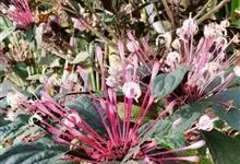 烟火树 Merr.)是唇形科、大青属常绿灌木或小乔木,株高可达4米。幼枝方形,墨绿色。叶对生,长椭圆形或披针形,先端尖,全缘或波状缘。纸质,叶背暗紫红色。聚伞状圆锥花序,顶生,小花多数,聚生成团,…全部>>