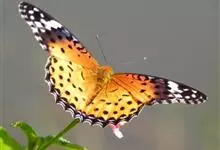 优红蛱蝶:翼展4.5-12厘米。是一种美丽的蝴蝶。色彩鲜艳,花纹相当复杂。前足相当退化,短小无爪。前翅R脉5条,常共柄。卵呈半圆球形。幼虫头上常有突起,体节上有枝刺,腹足趾钩1至3序中列式。蛹为垂蛹。全部>>