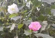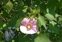 木芙蓉,锦葵科木槿属落叶灌木或小乔木。小枝上有细绒毛;叶片为卵状心形,托叶为披针形,常早落;花单生,花萼为钟形,花冠初为白色或淡红色,后逐渐变为深红色;果实为扁球形,有淡黄色的毛附着。花期8到10月。…全部>>