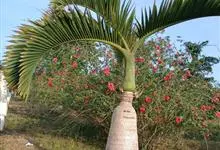 酒瓶椰为棕榈科椰子属植物。干高1-3米,径35-70厘米;茎干下部肥大,形似酒瓶,环节明显;羽状复叶,拱形生长,略呈旋转;小叶披针形,叶面略带红色;花序由冠茎基部长出,分枝下垂;果实椭圆形,…全部>>