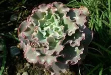 女王花笠,又名扇贝石莲花、女王花舞笠,是景天科拟石莲花属的多肉植物。由美国加利福尼亚州的育种师Dick Wright于1964年培育。特征是呈大波浪状褶皱的红色叶缘和气质高贵的粉紫色调。…全部>>