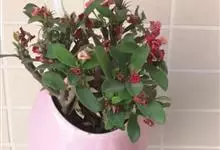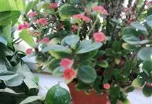 铁海棠为大戟科大戟属蔓生灌木植物;茎多分枝,具纵棱,呈旋转状;叶互生,通常集中于嫩枝上;每个花序基部边缘具微小的红色尖头;苞叶先端圆且具小尖头,无柄,上面鲜红色,下面淡红色;苞片丝状;子房光滑无毛,…全部>>