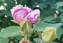 木芙蓉,锦葵科木槿属落叶灌木或小乔木。小枝上有细绒毛;叶片为卵状心形,托叶为披针形,常早落;花单生,花萼为钟形,花冠初为白色或淡红色,后逐渐变为深红色;果实为扁球形,有淡黄色的毛附着。花期8到10月。…全部>>