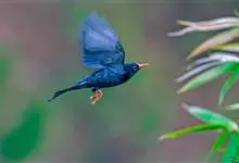 红嘴山鸦,是脊索动物门鸟纲雀形目鸦科鸟类。红嘴山鸦的成鸟通体羽毛纯黑色具有蓝色金属光泽,翼和尾泛有蓝绿色金属光泽;虹膜暗褐色,喙较为尖细,并且呈镰状下弯,喙和脚朱红色。…全部>>