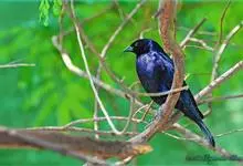 发冠卷尾是中型鸟类,体长28-35厘米。通体绒黑色缀蓝绿色金属光泽,额部具发丝状羽冠,外侧尾羽末端向上卷曲。栖息于海拔1500米以下的低山丘陵和山脚沟谷地带,多在常绿阔叶林、次生林或人工松林中活动。…全部>>