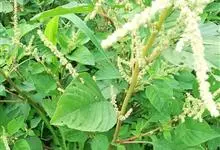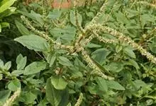 反枝苋是苋科苋属的一年生草本植物。株高达1米;茎密被柔毛;叶菱状卵形或椭圆状卵形,先端锐尖或尖凹,两面及边缘被柔毛,下面毛较密;穗状圆锥花序,顶生花穗较侧生者长;花被片长圆形或长圆状倒卵形,…全部>>