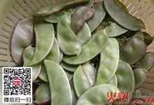 扁豆 Sweet)是豆科扁豆属多年生缠绕藤本植物,又名鹊豆、沿篱豆、藤豆等。全株几无毛,茎长可达6米。羽状复叶具3小叶;托叶基着,叶片披针形;小托叶线形,小叶宽三角状卵形,宽与长相等,…全部>>