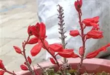 一串红,又称爆仗红、象牙红,为唇形科鼠尾草属植物。花序修长,色红鲜艳,花期又长,适应性强,为中国城市和园林中最普遍栽培的草本花卉。原产巴西、南美洲。喜温暖和阳光充足环境。不耐寒,耐半阴,忌霜雪和高温,…全部>>