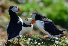角嘴海雀,是海雀科、角嘴海雀属的中型海鸟,体长32-41厘米,嘴短而粗呈圆锥状、橙色。夏羽上嘴基部有一个三角形的突出物,形状如角。头两侧各有两条由白色丝状饰羽组成的纵带,分别位于眼上和眼下后方的头侧…全部>>