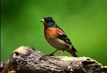 燕雀属小型鸟类,体长14-17厘米。嘴粗壮而尖,呈圆锥状。雄鸟从头至背辉黑色,背具黄褐色羽缘。腰白色,颏、喉、胸橙黄色,腹至尾下覆羽白色,两胁淡棕色而具黑色斑点。两翅和尾黑色,翅上具白斑。…全部>>