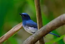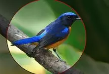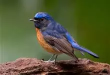 棕腹大仙鹟:体重24-28克,体长15-17厘米,是一种小型的色彩亮丽的鹟。雄鸟上体深蓝,下体棕色,脸黑,额、颈侧小块斑、翼角及腰部亮丽闪辉蓝色。与棕腹仙鹟易混淆,区别在色彩较暗。雌鸟灰褐,…全部>>