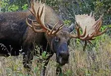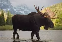 驼鹿:鹿科、驼鹿属动物。体长200-260厘米,肩高160-240厘米,体重400-700千克。肩部特别高耸,则又像骆驼背部的驼峰,因此得名。以雄性的掌形鹿角为特征。驼鹿共有8个亚种,…全部>>