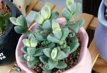 鹿角海棠是番杏科鹿角海棠属多浆肉质灌木。老枝呈灰褐色,木质化,嫩枝为淡绿色,分支处有节间;叶交互对生,呈半月形,三棱状,为粉绿色至灰绿色,叶端狭窄,先端尖锐;叶尖微粉红色,叶背有龙骨状突起,…全部>>