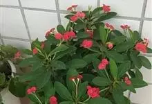铁海棠为大戟科大戟属蔓生灌木植物;茎多分枝,具纵棱,呈旋转状;叶互生,通常集中于嫩枝上;每个花序基部边缘具微小的红色尖头;苞叶先端圆且具小尖头,无柄,上面鲜红色,下面淡红色;苞片丝状;子房光滑无毛,…全部>>