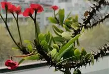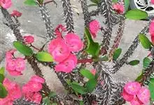 虎刺梅:别称铁海棠,是蔓生灌木植物。茎多分枝,长60-100厘米,直径5-10毫米,具纵棱,密生硬而尖的锥状刺,刺长1-1.5厘米,直径0.5-1.0 毫米,常呈3-5列排列于棱脊上,呈旋转。叶互生…全部>>