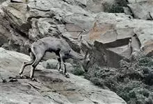 岩羊是偶蹄目牛科岩羊属哺乳动物。颜色与岩石相像,两性皆具角,雄羊角大而弯曲,角外表具不明显的横棱且体壮实,雌羊角短小;头较小,眼大,耳小,颏下无须;体背面为棕灰或石板灰色略有蓝色反光,…全部>>