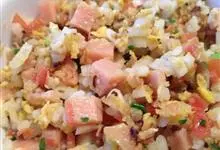 扬州炒饭又名扬州蛋炒饭,是江苏省扬州市的一道传统名菜,属于淮扬菜,其主要食材有米饭、火腿、鸡蛋、虾仁等。扬州炒饭选料严谨、制作精细、加工讲究,而且注重配色。炒制完成后,…全部>>