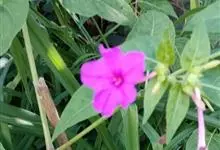 即紫茉莉,英文名:Four-o'clock,Marvel of Peru,为紫茉莉科、紫茉莉属多年生草本植物,一年生栽培。株高50~80cm。根粗壮,茎多分枝而散生。叶对生,卵形或心脏形。花数朵簇生…全部>>